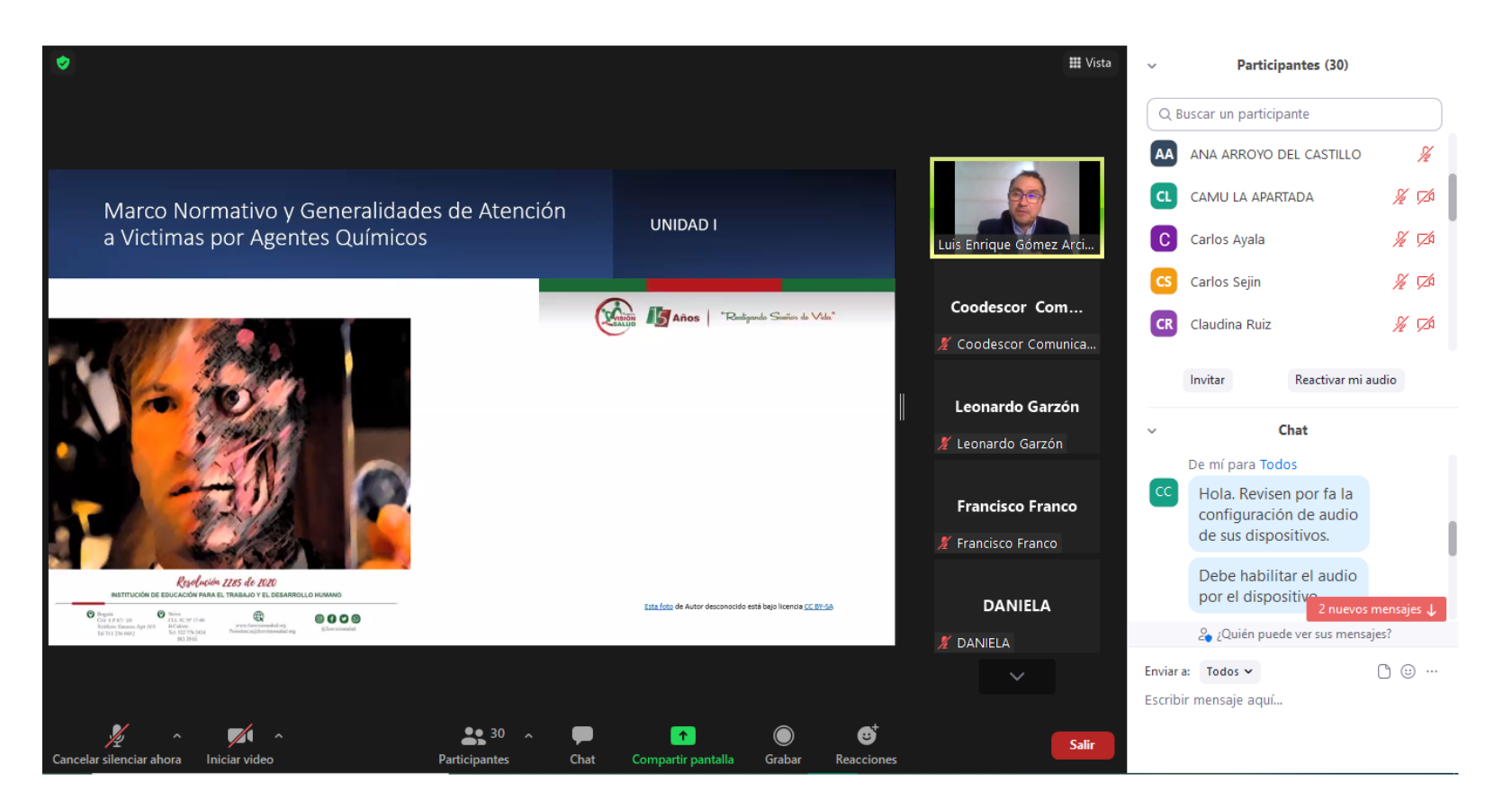 Con una gran participación del personal asistencial de diferentes ESEs asociadas activas a Coodescor, se dio inicio al curso de 60 horas de atención integral a víctimas de ataques con agentes químicos, el pasado martes 19 de abril, a través de zoom.